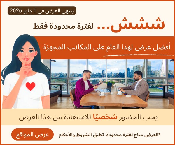 - مع إما مكتب إفتراضي لإدارة شركتك عن بعد، هوتديسك أو مكتب خاص يتسع لشخص واحد أو ٢٠ شخص، يمكنك الإرتقاء بشركتك بمرونة وبدون مخاطر.